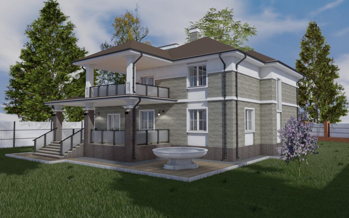 Двухэтажный дом в классическом стиле с террасой и гаражом. Площадь 254 кв.м. гостиная, кухня, 2 санузла, 4 спальни, кабинет, терраса, гараж.