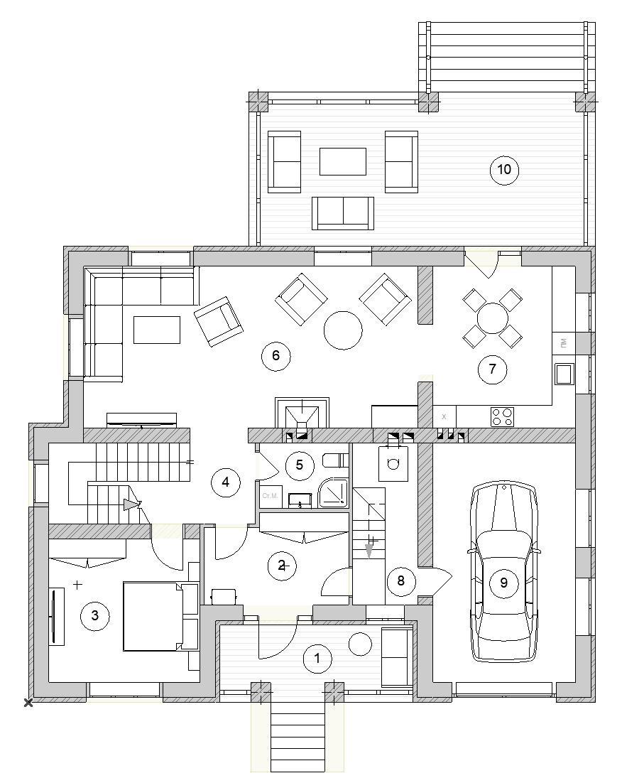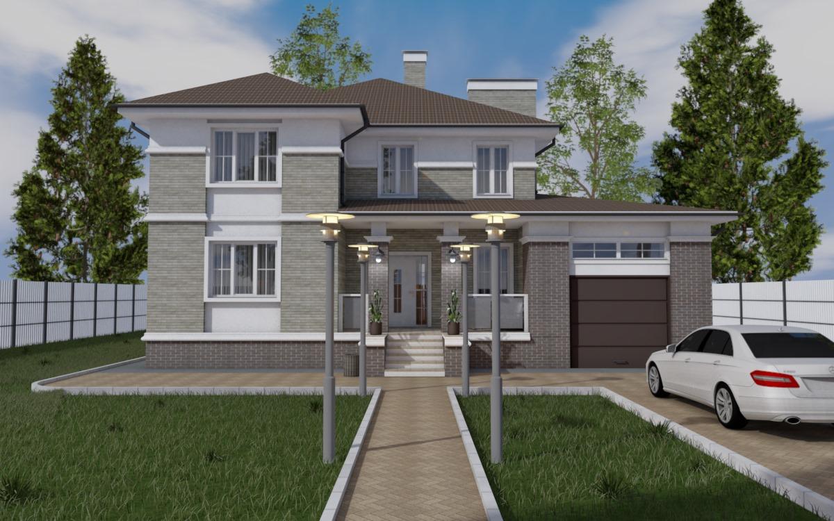 Двухэтажный дом с гаражом и террасой