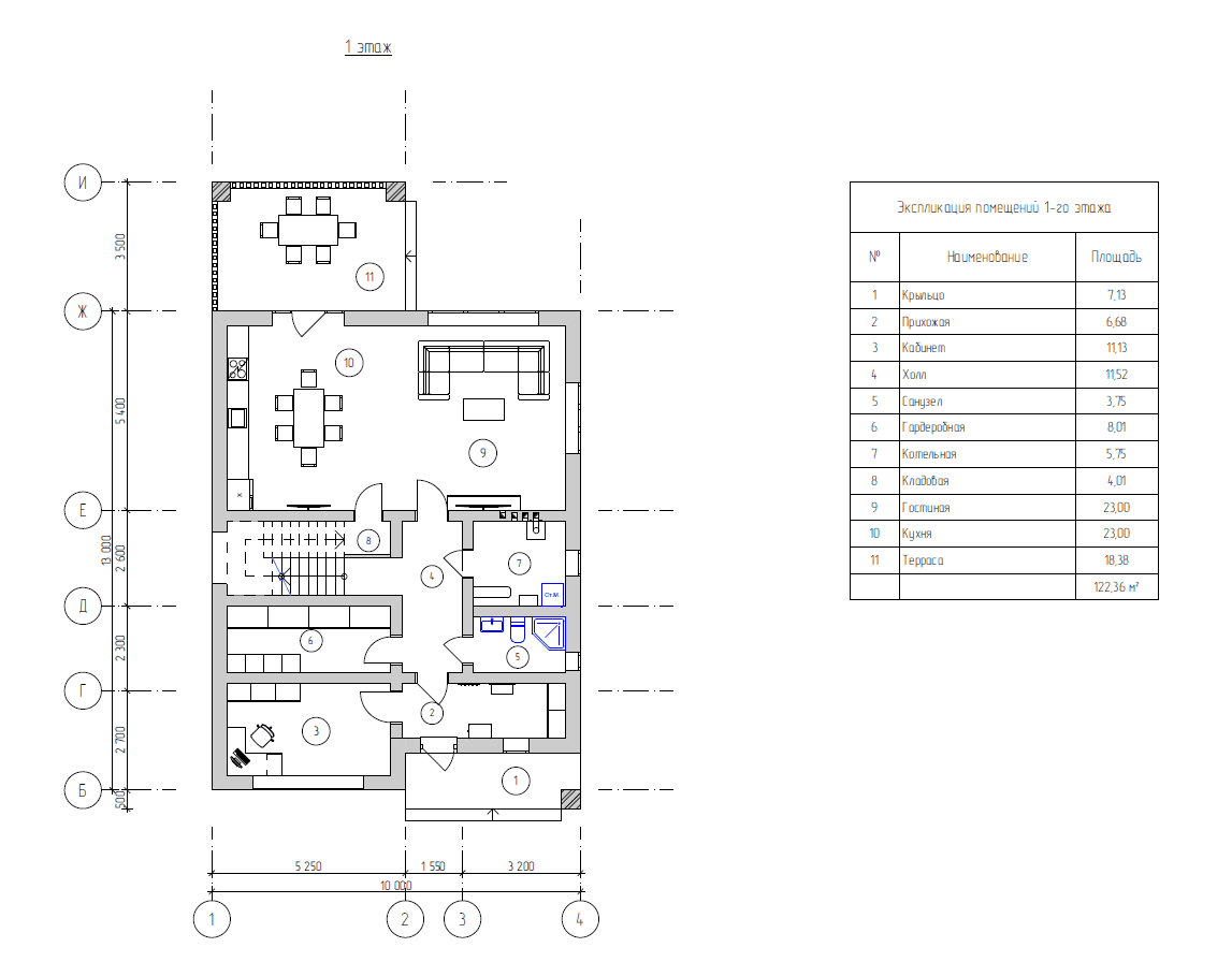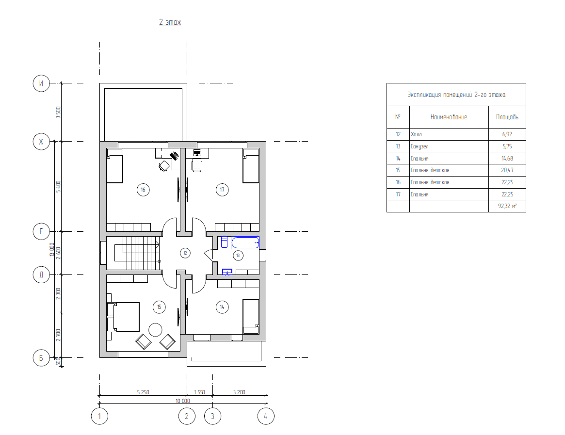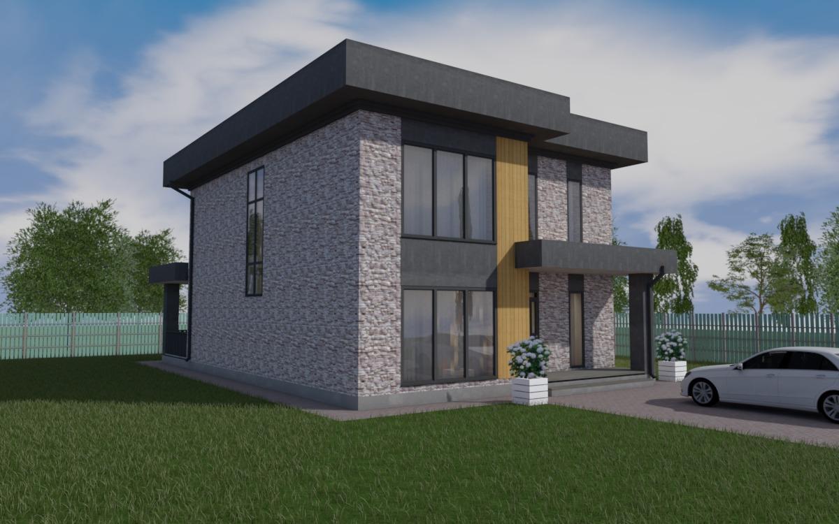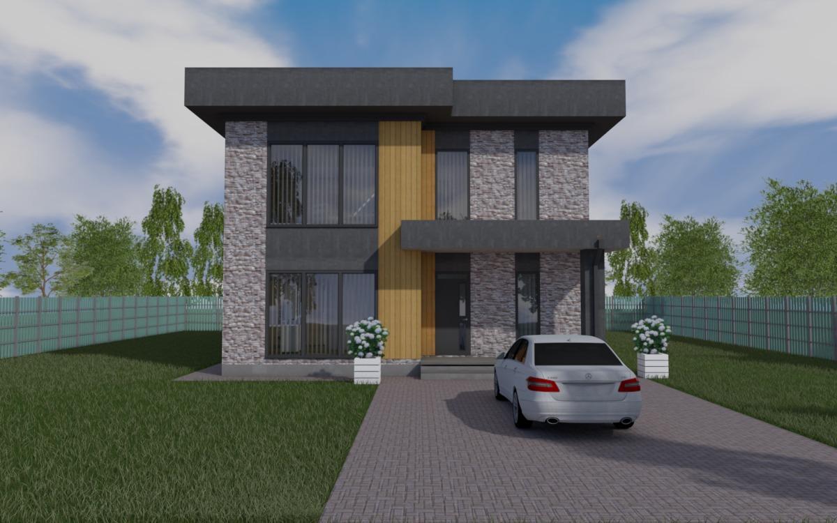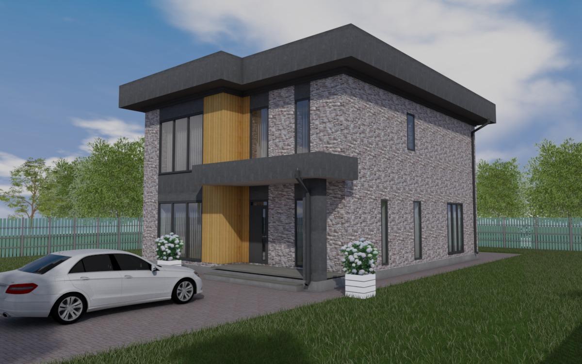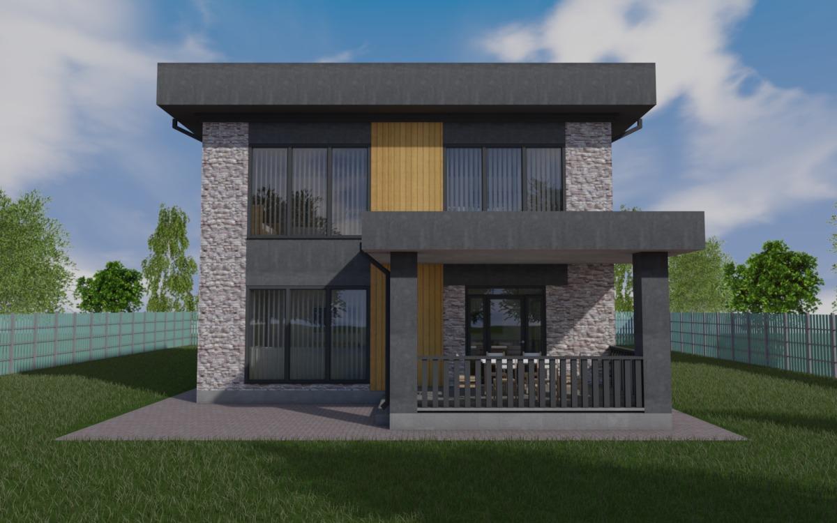 Двухэтажный дом с террасой. Площадь - 214 кв.м. Состав помещений: 4 спальни, 2 санузла, прихожая, котельная, гардеробная, терраса.