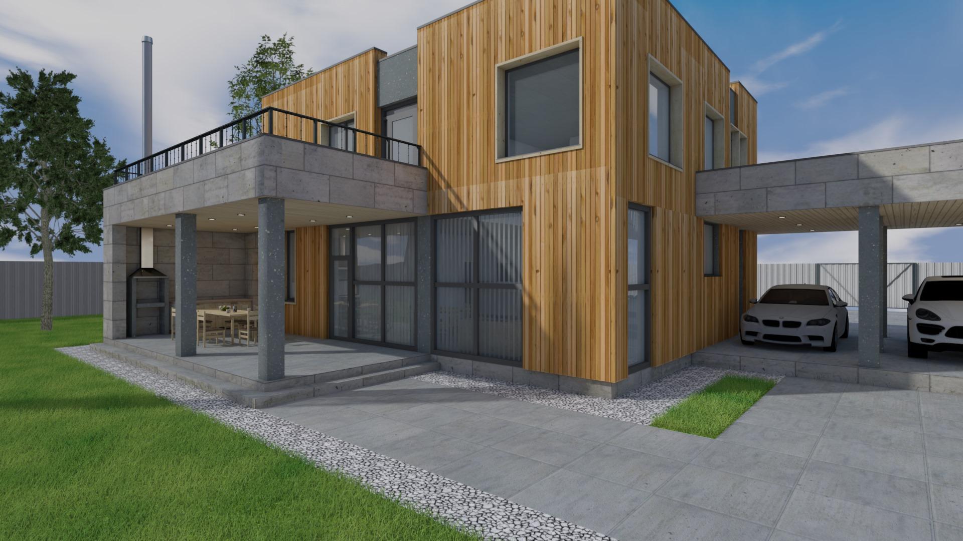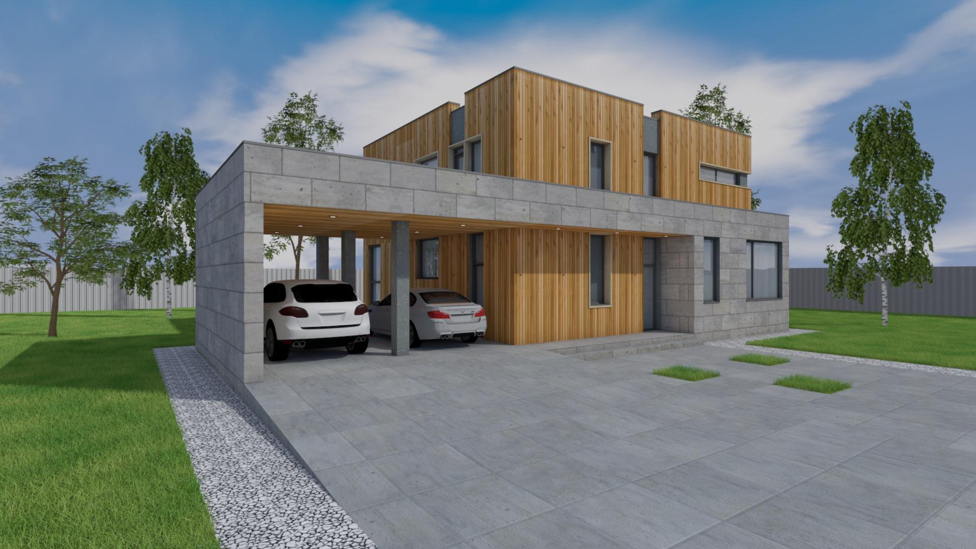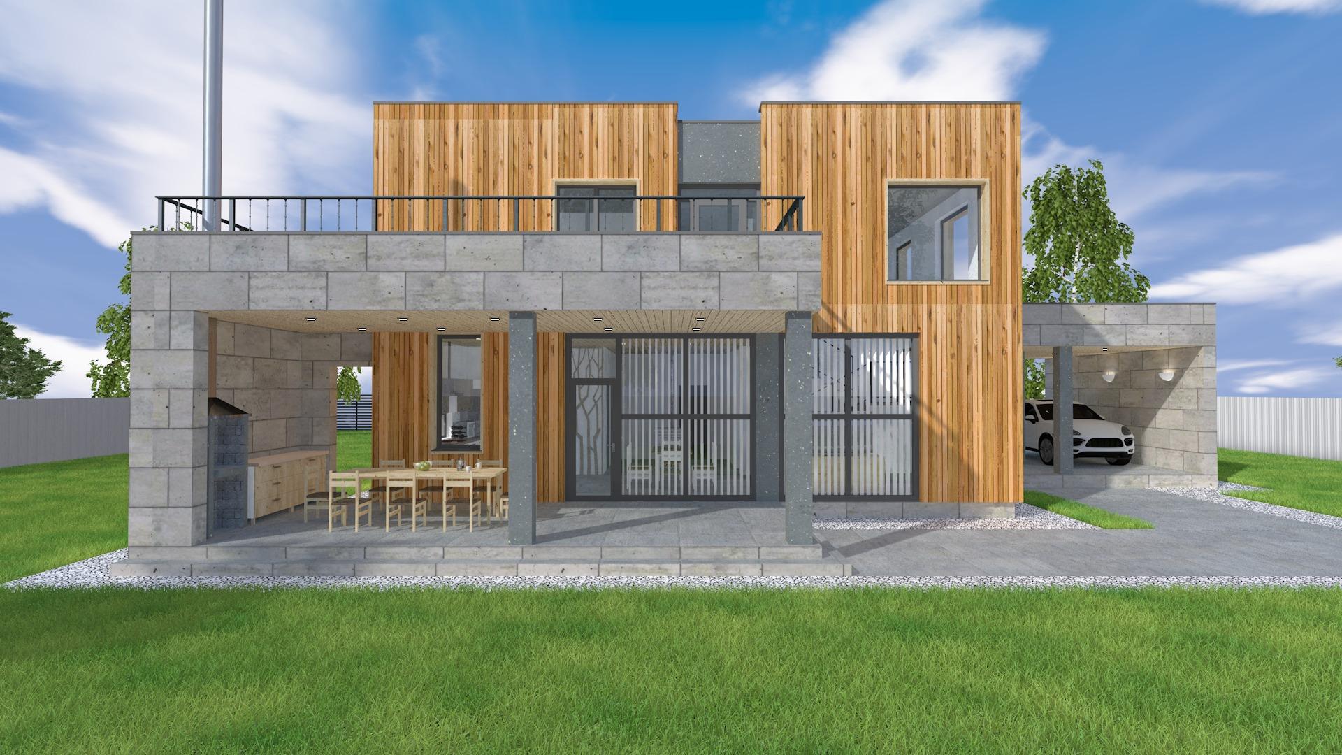 Дом площадью 220 кв.м. с плоской кровлей и навесом для авто. В доме имеется 4 спальни, 2 санузла, гостиная, постирочная (кладовая)